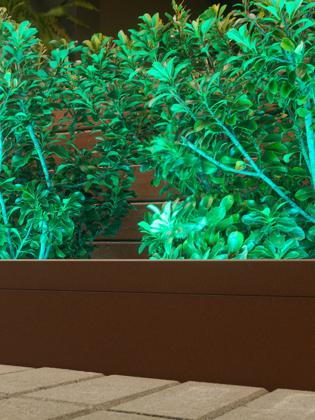 Our garden edging uses Wi-Fi controlled Smart garden lighting that can be programmed to your choice of colours depending on the context and usage of the environment. Or for special city celebrations, you have the option of customising Edglit lighting to synchronise to the beat of the music being played.